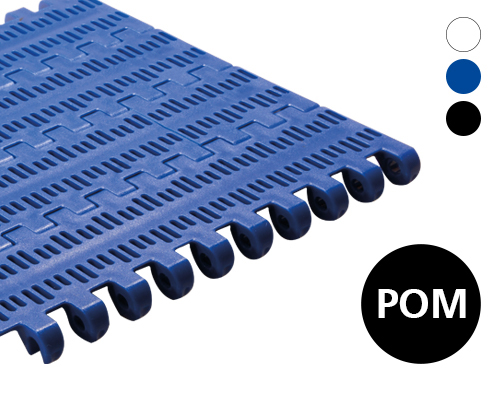 Introducing the 50-805 Perforated Flat Top Modular Belt: engineered for optimal flow with 31% efficiency, FDA and USDA compliant, ideal for hygienic industrial applications. Choose from natural or blue POM materials.