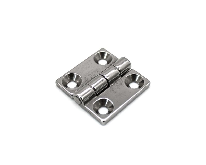 Discover our polished stainless steel hinge, measuring 50 x 50 mm with a robust pin design. Features a 30 mm hole spacing and 6.5 mm bore holes for secure installation.