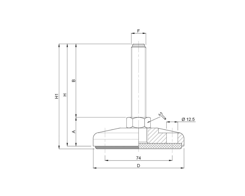 Levelling foot MASSIV Steel, Ø 159 mm, M30 x 200 mm, Drills, NBR