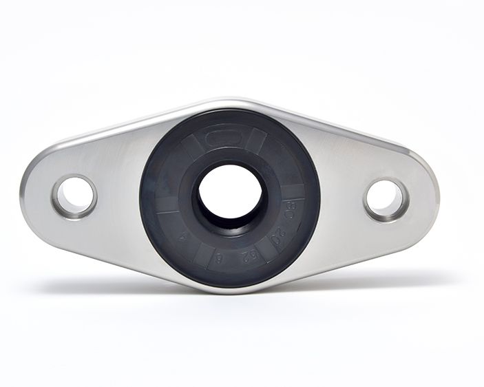 Die 2-Loch Gehäuseeinheit besteht aus einem abgedichteten Kugellager aus Edelstahl (1.4125), lebensdauergeschmiert mit lebensmittelkonformen Fett gemäß NSF H-1, sowie einem Kunststoffgehäuse aus PBT.