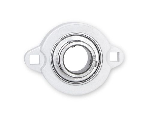 Das 2-Loch Flanschlager besteht aus einem Einsatz aus Wälzla-gerstahl (lebensdauergeschmiert, kann jedoch mühelos nachge-schmiert werden) und einem Gehäuse aus thermoplastischem Kunststoff (PBT).