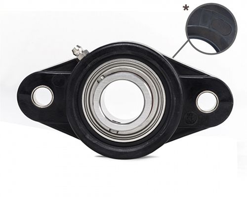 Die 2-Loch Gehäuseeinheit besteht aus einem abgedichteten Kugellager aus Edelstahl (Hochwertiger Werkstoff: 1.4125), lebensdauergeschmiert mit lebensmittelkonformer Fettfüllung NSF H-1 Freigabe, sowie einem Gehäuse aus thermoplastischem Kunststoff (PBT).