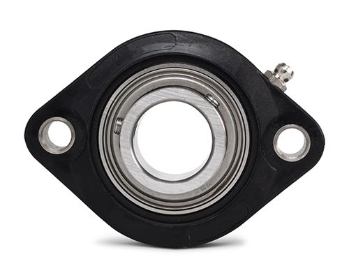 Die 2-Loch Gehäuseeinheit besteht aus einem Einsatz aus Wälzlagerstahl (lebensdauergeschmiert, kann jedoch mühelos nachgeschmiert werden) und einem Gehäuse aus thermoplastischem Kunststoff (PBT).