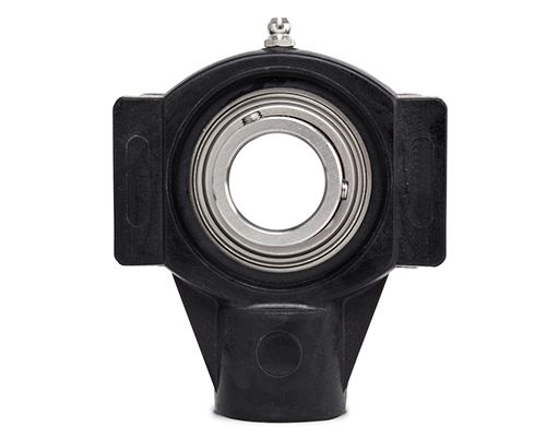 Die Spannlagereinheit besteht aus einem abgedichteten Kugellager aus Edelstahl (Hochwertiger Werkstoff: 1.4125), lebensdauergeschmiert mit lebensmittelkonformer Fettfüllung NSF H-1 Freigabe, sowie einem Gehäuse aus thermoplastischem Kunststoff (PBT).
