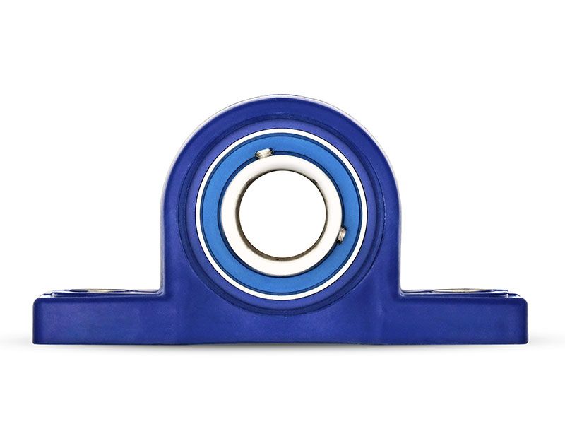 Die Stehlagereinheit besteht aus einem abgedichteten Kugellager aus Edelstahl (Hochwertiger Werkstoff: 1.4125), lebensdauergeschmiert mit lebensmittelkonformer Fettfüllung NSF H-1 Freigabe, sowie einem Gehäuse aus thermoplastischem Kunststoff (PBT).