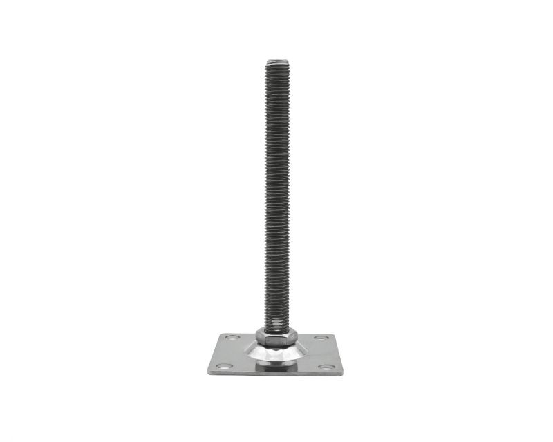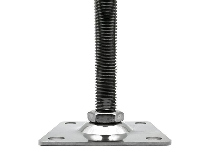 Maschinenfuß / Gelenkfuß BLECHTELLER Edelstahl, 100 x 100 mm, M16 x 150 mm, Bohrungen