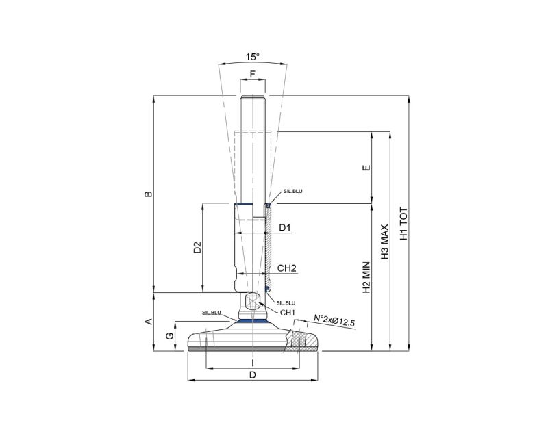 Maschinenfuß / Gelenkfuß TEKNO-HYGIENIC 3-A, Ø 200 mm Edelstahl, M36 x 140 mm, Bohrungen, NBR