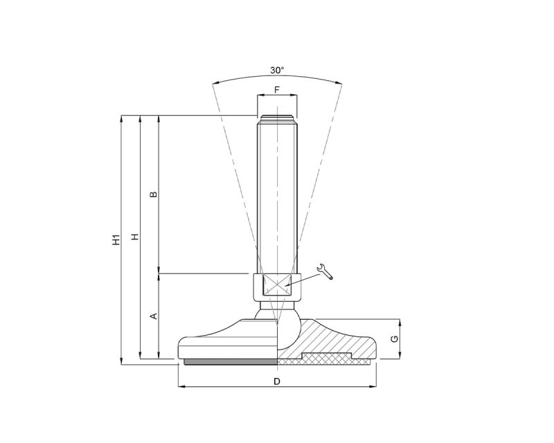 Der MASSIV Edelstahl Maschinenfuß bietet mit einem Durchmesser von 159 mm und einer Belastbarkeit von 70.000 N höchste Stabilität. Ideal für anspruchsvolle Anwendungen mit präzisem Ausgleichswinkel von 30°.
