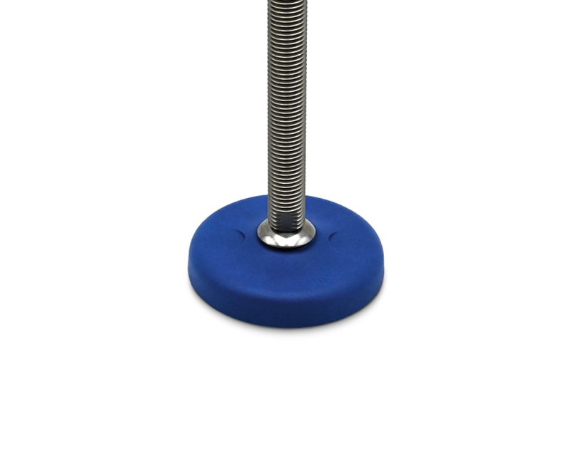 Maschinenfuß / Gelenkfuß ECO16 PA blau, Ø 83 mm, M24 x 150 mm Edelstahl, Bohrungen