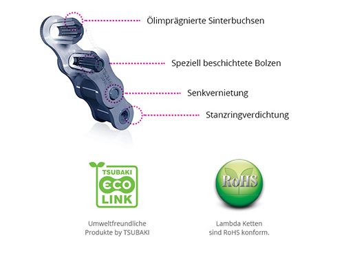 Rollenkette 80-1 ANSI, 1" x 5/8", Lambda, DIN 8188, wartungsfrei, Teilung 25,4 mm, Innere Weite 15,88 mm, Rollen-Ø 15,88 mm, TSUBAKI, Bund zu 3,05 M. inkl. Vbgl.
