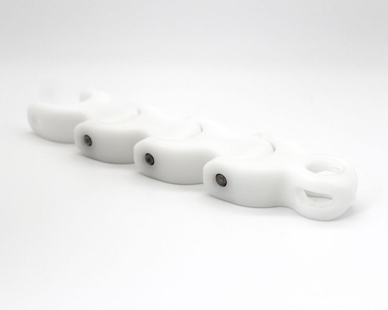 Die MOVET Multiflex 1702 LF Mitnehmerset bietet eine flexible Lösung mit 1300 mm Länge für kurvengängige Anwendungen. Hergestellt aus lebensmittelkonformem Acetal-POM, garantiert es hohe Betriebssicherheit und Effizienz.